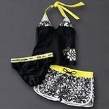 - 3-piece set includes: halterkini top, scoop bottoms & shorts