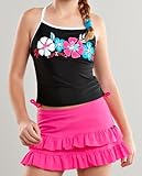 - 3-piece set includes: tankini top, scoop bottoms & cover-up skirt